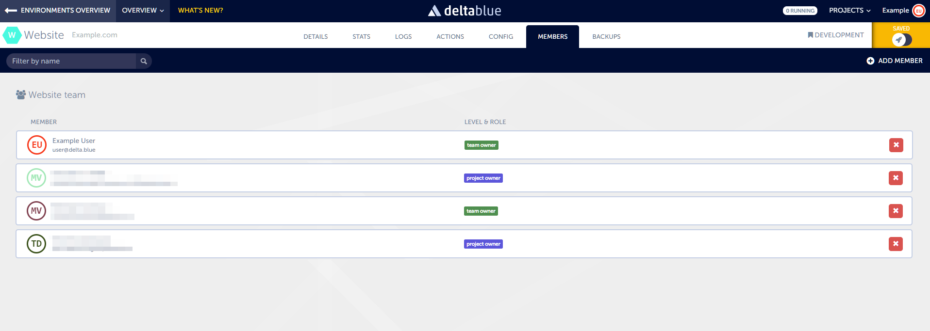 In the DeltaBlue Cloud Platform, user management is essential for ensuring efficient collaboration and access control within projects, environments, and applications. Here's how you can manage users at different levels: