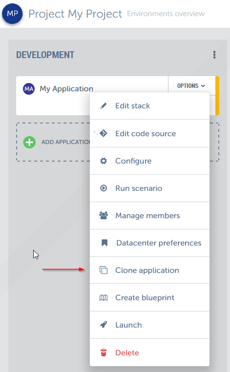 Then choose “Clone application” from the list.