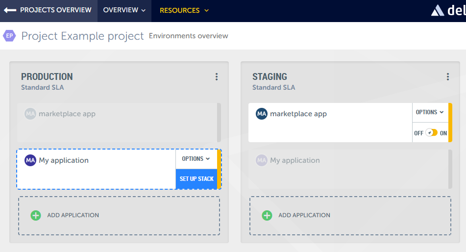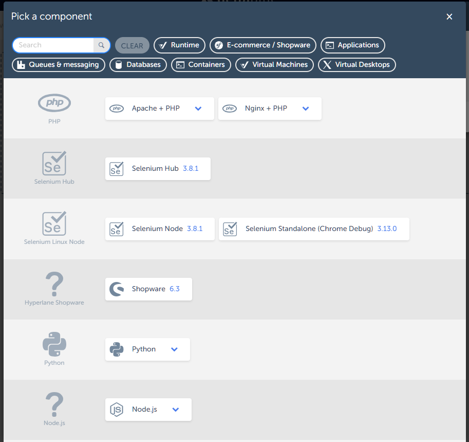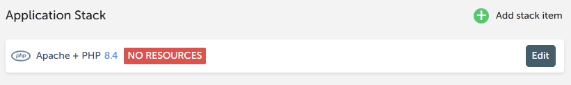 Next, you'll need to add stack items. These are the technologies your application will use, such as PHP and Apache, Python, Node.js, or specific platforms like Shopware.
