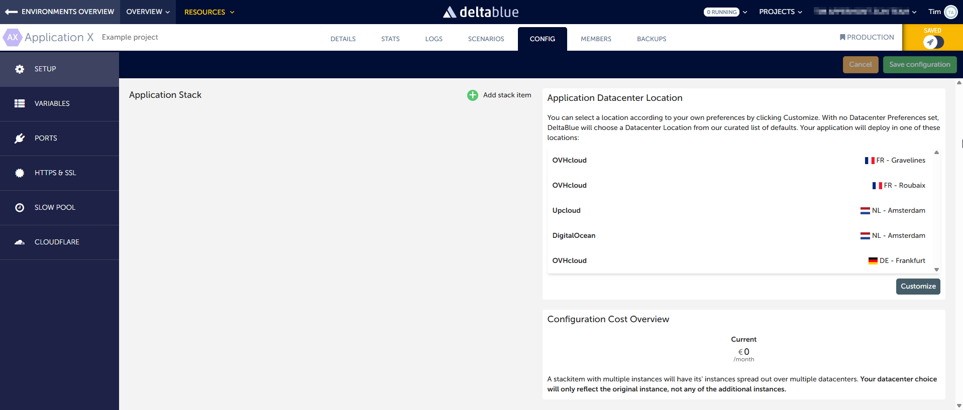 - If you do not have datacenter preferences, the platform will automatically select a datacenter from the list to host your application. This is the default setting