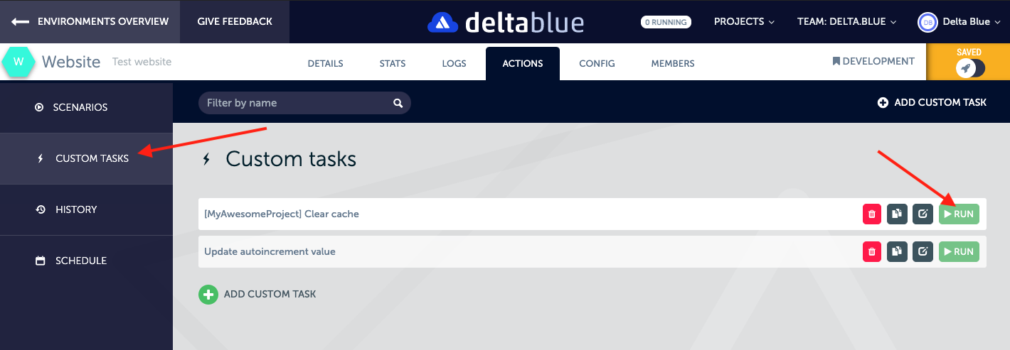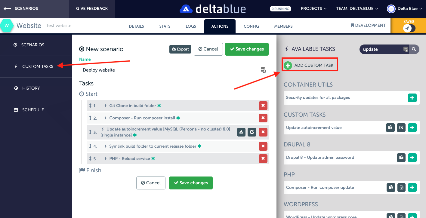 You can create a custom action in 2 ways: either on the edit scenario page, or when you use the “Custom actions” menu item on the left (below the “Scenarios” menu item).