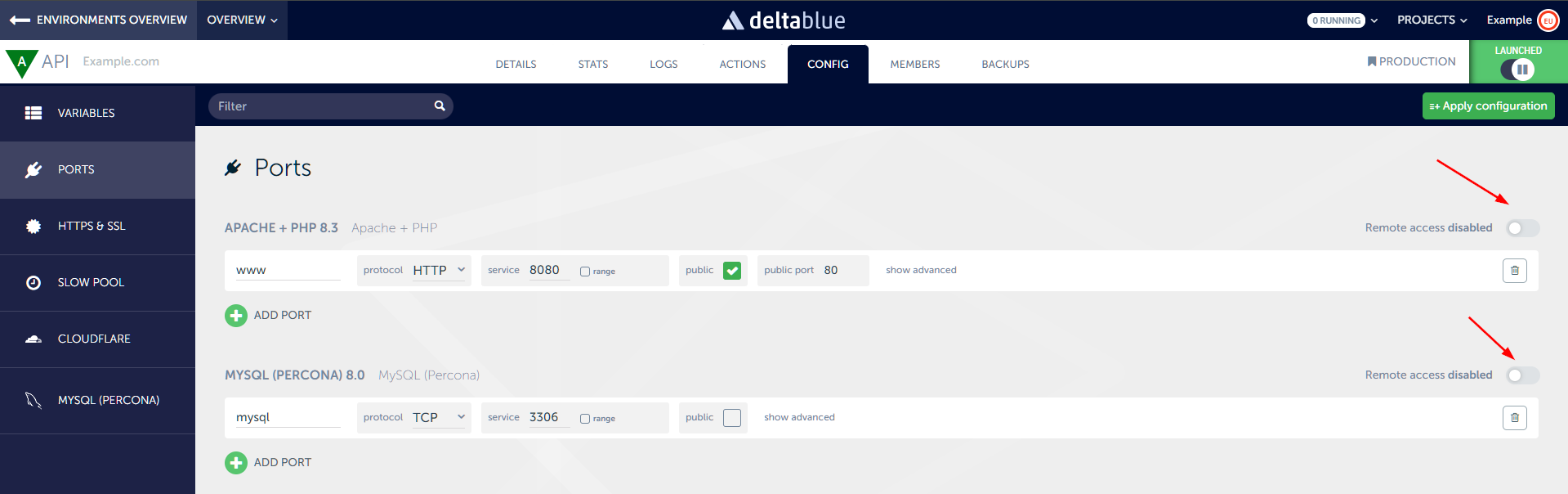 - Copy Connection String: When you add an SSH port, the platform will show a button to copy the connection string for easy login using remote access.