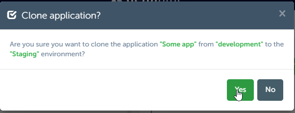 Upon confirmation, the application will be cloned to the staging environment. This will allow you to test and validate changes before promoting them to production.