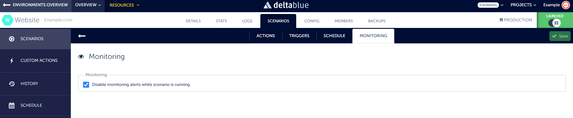 Disabling availability monitoring alertsYour application might be unavailable when running scenarios. We recommend disabling availability monitoring alerts during scenario runs to prevent false alerts about unavailability. This can be done in the Monitoring tab within the Scenarios section.