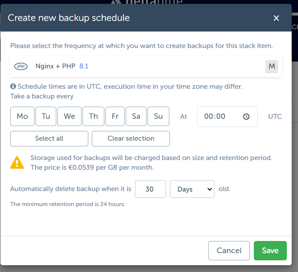 - A modal opens where you can specify at which frequency a backup should be taken