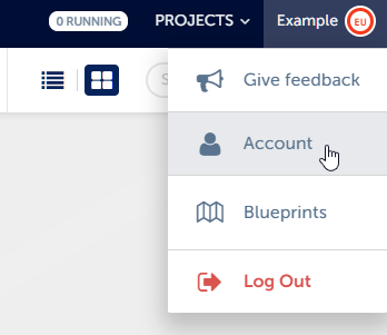 Adding your SSH key to your account on the platformIn the top right corner, click on your name and then “Account”.