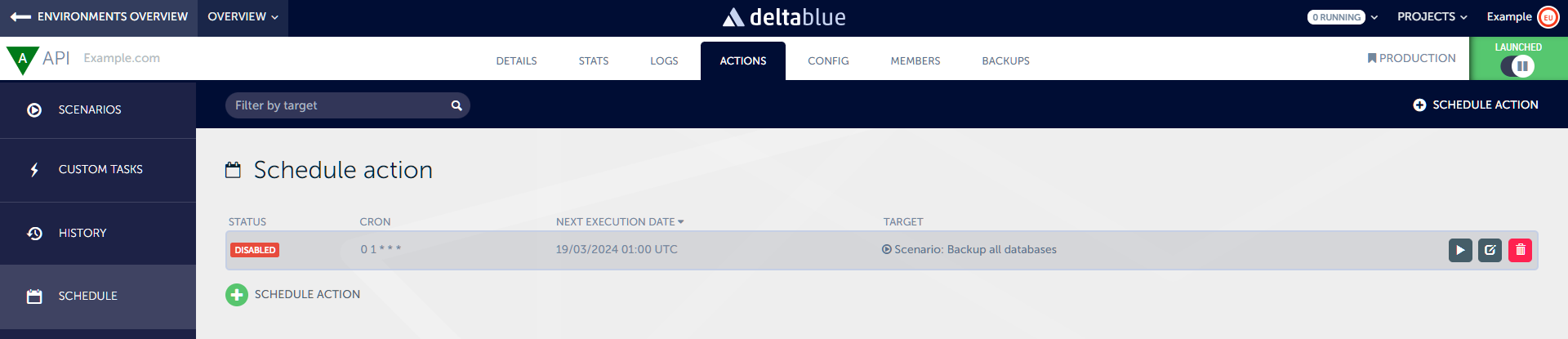 Within the Schedule section, you'll find an overview of any already scheduled actions, providing you with visibility into your existing scheduling setup.