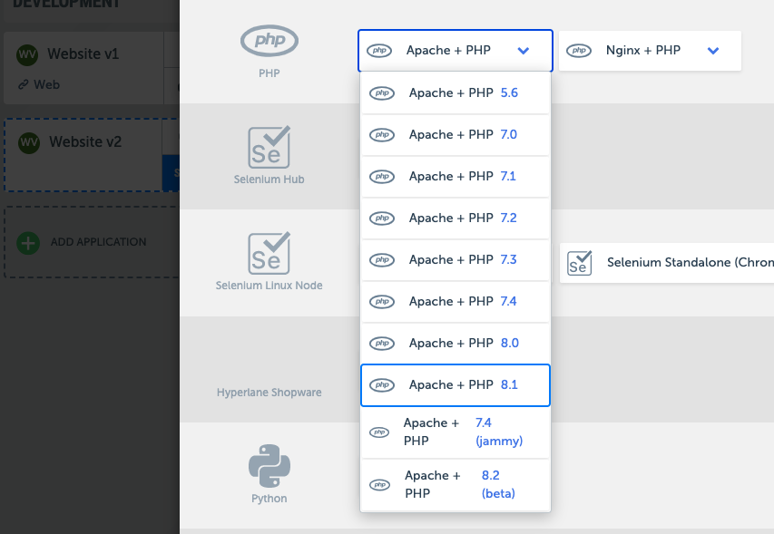 In the DeltaBlue platform, it is very easy to upgrade the version of your application (eg PHP 7.0 → PHP 8.1).