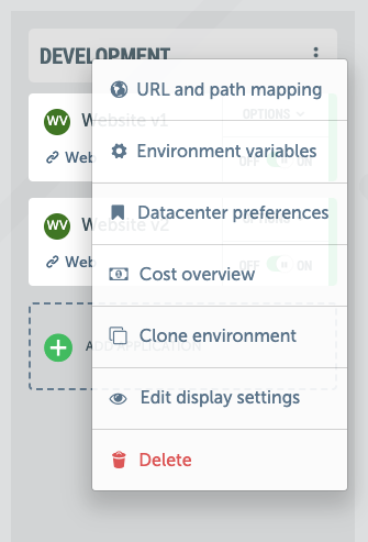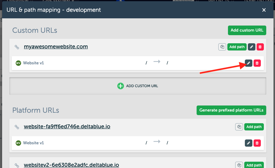 Step 3: On the environment overview page, click the 3 dots next to the environment name and click on “URL and path mapping” :